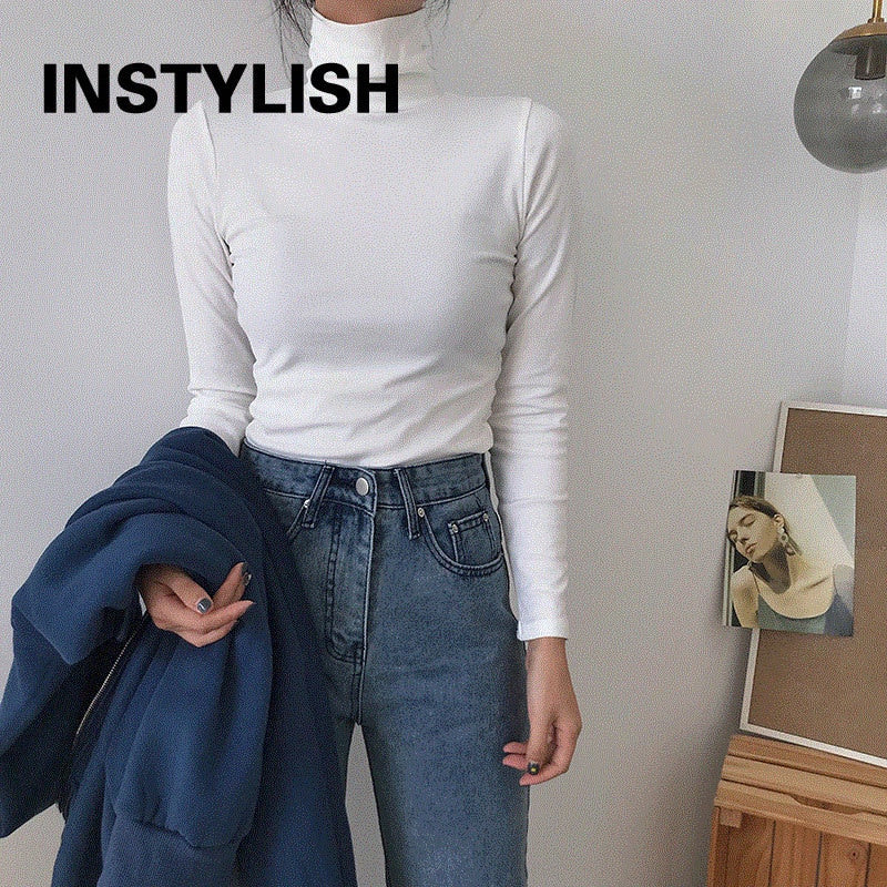 Spring Long Sleeve Turtleneck Tops Slim Knitted Bottoming T Shirt Korean Fashion Sweater Harajuku Pullover Women Clothing Jumper